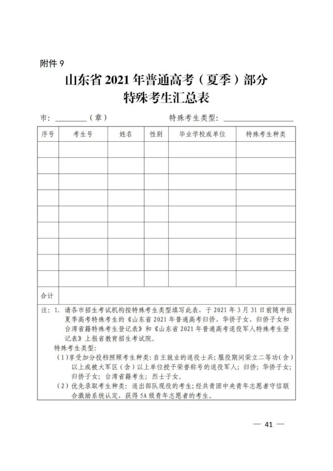 9.山东省2021年普通高考(夏季)部分特殊考生汇总表