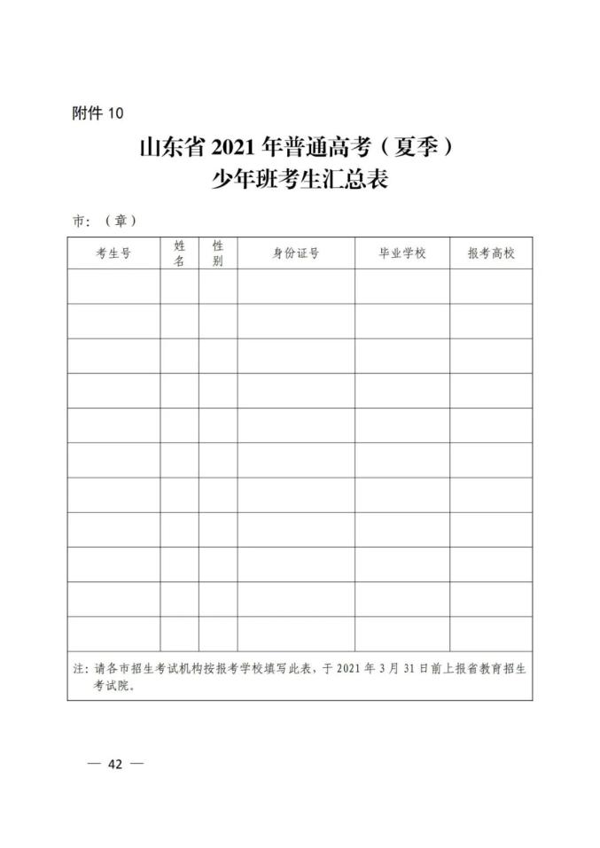 10.山东省2021年普通高考(夏季)少年班考生汇总表