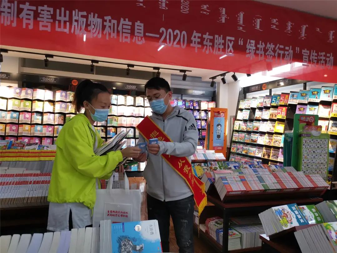 工作人员向市民介绍“绿书签”行动在具体工作中,突出工作重点,抓好集中治理,强化综合治理,积极推进站点建设,通过多种宣传形式,营造良好的社会氛围。目前建成111个基层站点。2020年截至目前累计检查出版物市场300余家次,查缴有害出版物0.6万余册。
