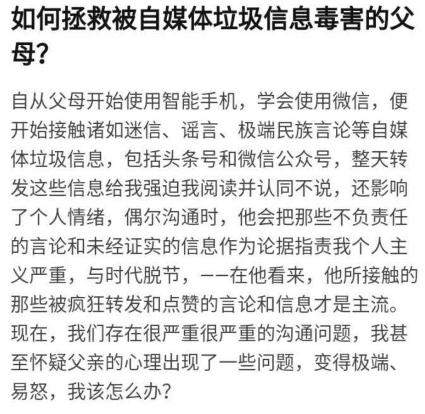 出了平台收割,更有骗子横行。比如网上还出现了一些反智谣言,挑拨父母和子女之间的关系,让爸妈们宁可信任骗子也不信任我们。