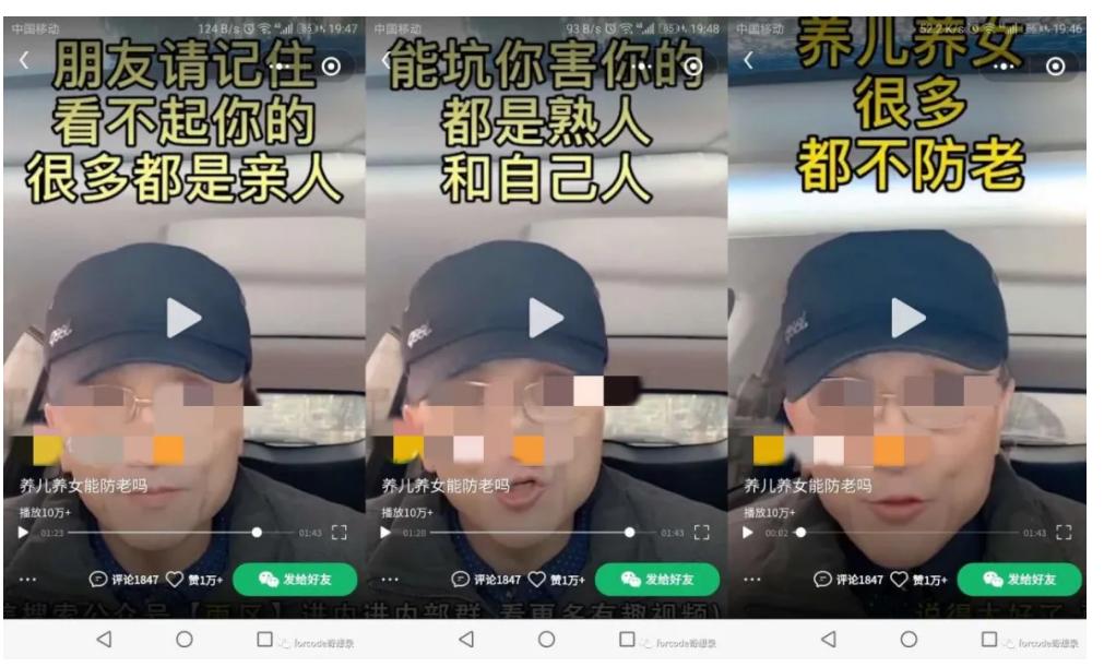短视频,慢慢开始流行一些理念,“养儿养女无用”“十个儿子九不孝”“靠子女不如靠自己”“子女都啃老”等等。在潜移默化的影响下,有些老人真的开始觉得自己的儿女不孝,并指指点点。