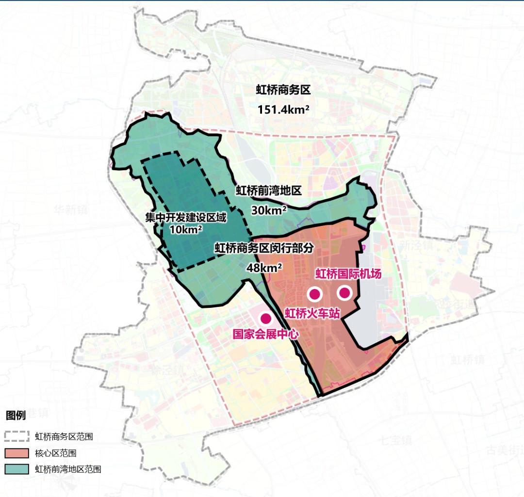 虹桥主城前湾地区位于虹桥商务区北部,面积约30平方公里,是虹桥国际开放枢纽城市功能的核心承载区,是虹桥“十四五”发展的新中心,定位为“长三角总部经济首选地、国家产城融合示范标杆和绿色开放共享的国际主城”。“十四五”期间,前湾地区将集中开发建设北青公路以北10平方公里,规划提供新增商品住宅约250万平方米,商业商办约200万平方米,研发约200万平方米。