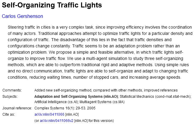 但结果非常失败,因为一些汽车会试图先加速再减速。这样就会得到一些讨厌的震荡,研究失败了。Gershenson从没把它作为能接受同行审评的论文发表。