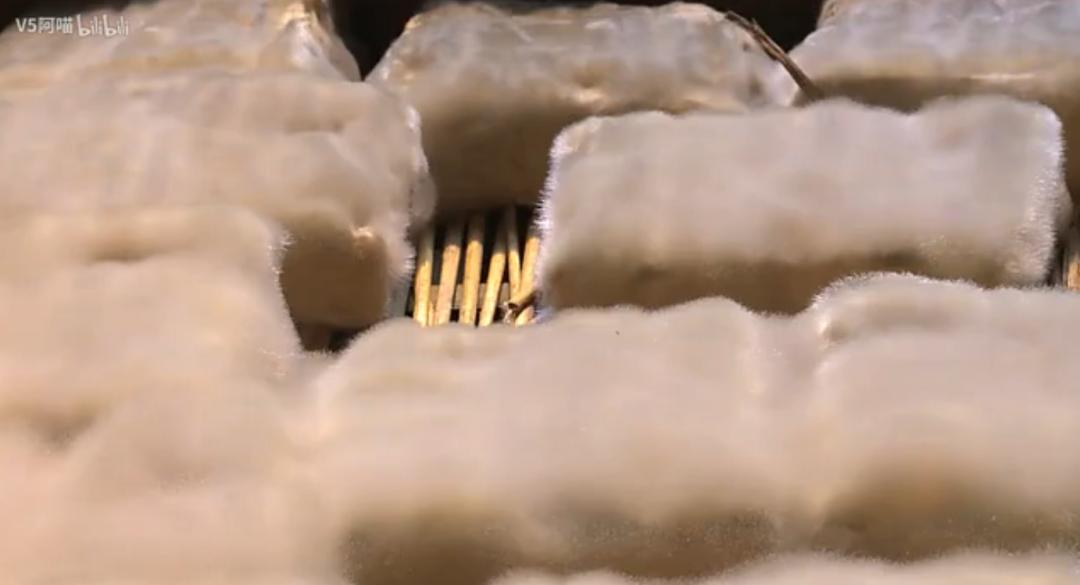 在放入井水点卤的过程中,手法及其重要。越慢,点卤的效果越好。速度过快,将导致豆腐无法成型。而快慢之间,全靠师傅多年经验。