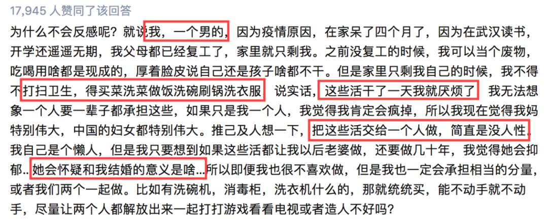 关于这一点,有人也曾经在知乎上提问过:为什么让女性做家务这件事会造成那么多女性反感?