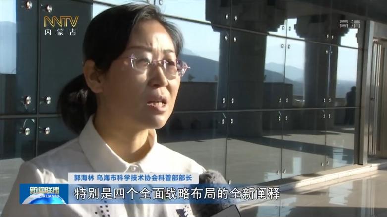 乌海市科学技术协会科普部部长 郭海林:“特别是“四个全面”战略布局的全新阐释,更让我们备感振奋,把智慧和力量凝聚到全会确定的各项目标任务上来,为夺取全面建设社会主义现代化国家新胜利不懈奋斗。”