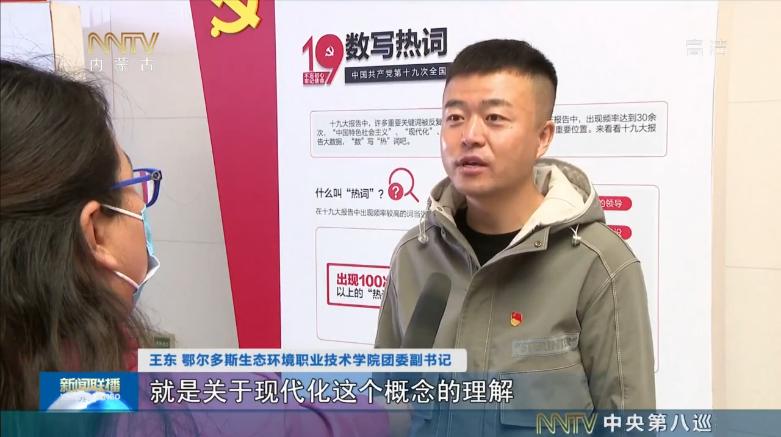 鄂尔多斯生态环境职业技术学院团委副书记 王东:“有一个词让我很振奋很受鼓舞——现代化,是我们全体人民的现代化,是物质文明和精神文明的现代化,是我们人与自然和谐共生的现代化。”大家表示,要按照党中央部署,深入学习贯彻党的十九届五中全会精神,以实际行动推动全会精神落地生根,把全会精神和各项目标任务切实转化为共同认识和坚定行动,推动内蒙古经济社会发展再上新台阶。