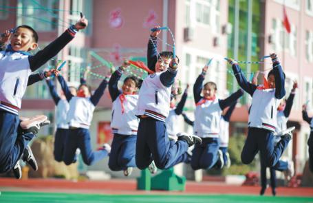 A class of students from the Qingdao Siliu Middle Road No 3 Primary School practice skipping rope. CHINA DAILYIn order to promote students' initiative learning in classroom teaching, the Licang Experimental Primary School began to optimize its teaching model as early as 2015.