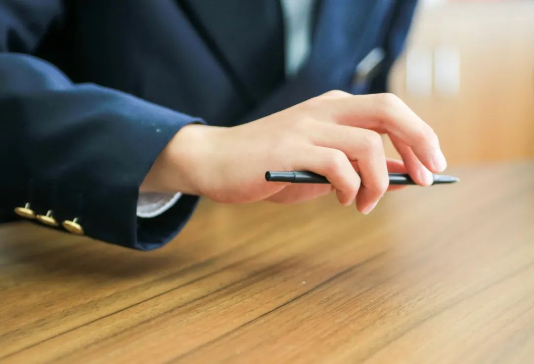 大拇指和食指夹住笔尖