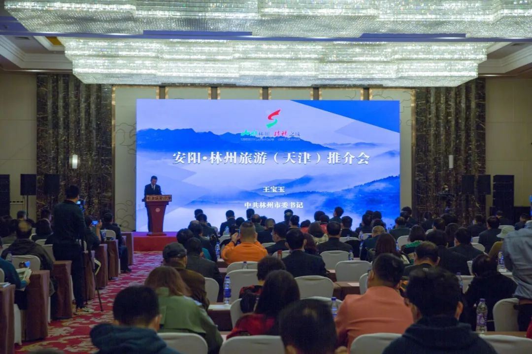 2020年11月7日,以“山水林州 精神之城”为主题的林州旅游(天津)推介会在天津市津卫大酒店成功举办。来自天津中铁旅行社集团、世纪明德教育集团、天津北中国旅行社集团、天津盛世华堂国旅、天津市谦祥溢和林州两地的旅行商、自驾、研学机构负责人和天津日报、今晚报、天津电台、新华网、人民网、腾讯网、新浪网、今日头条、喜马拉雅、都市频道、网易、凤凰网、交通广播、旅游咨询网等新闻媒体的记者,共计200余人参加了活动。天津市文化和旅游局、红桥区区委宣传部和文化和旅游局、安阳市政府和林州市的主要领导出席了会议。