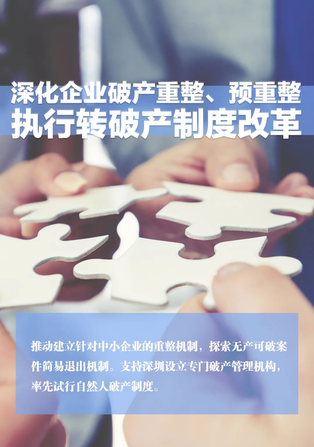 推动建立针对中小企业的重整机制,探索无产可破案件简易退出机制。支持深圳设立专门破产管理机构,率先试行自然人破产制度。4