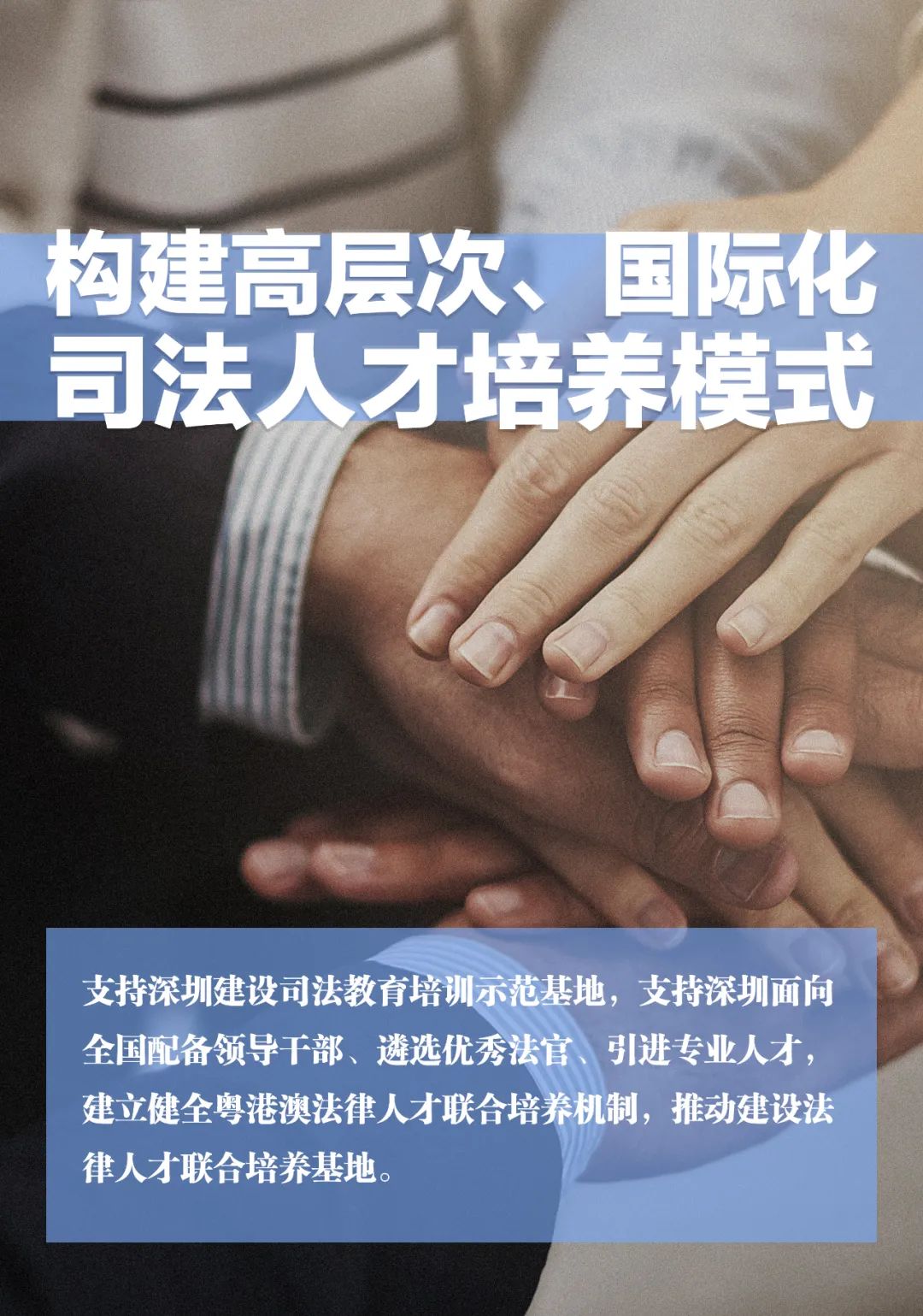 支持深圳建设司法教育培训示范基地,支持深圳面向全国配备领导干部、遴选优秀法官、引进专业人才,建立健全粤港澳法律人才联合培养机制,推动建设法律人才联合培养基地。喜欢此内容的人还喜欢