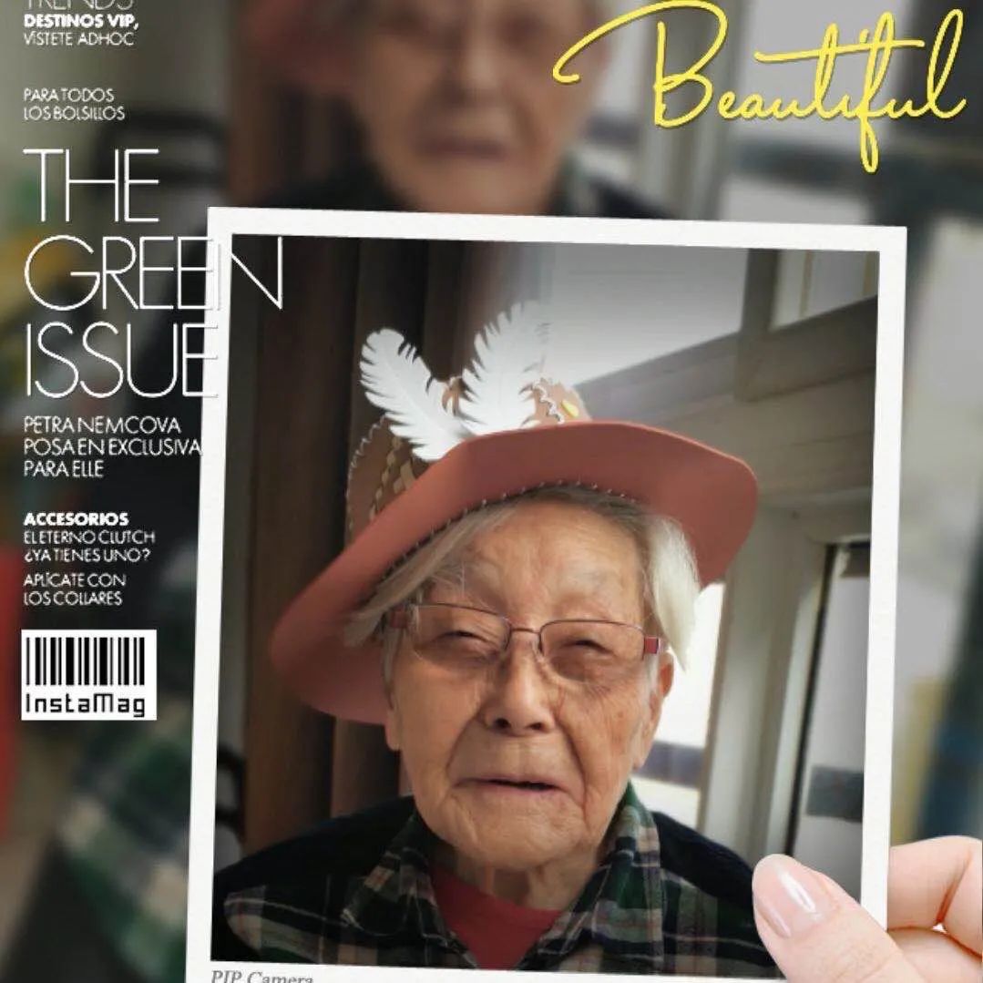 一件黑白格长裙,外加一件深绿色夹克,已经八十出头的她看起来只有五六十岁的样子!