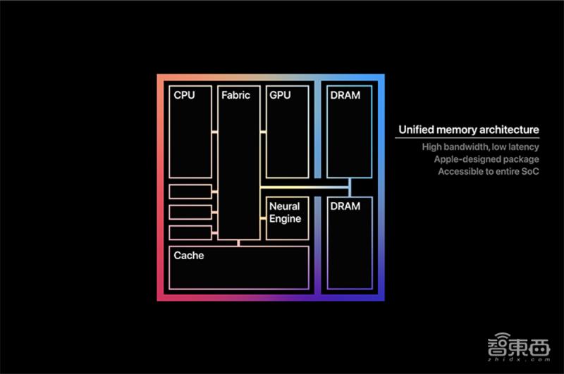 M1芯片还带来了最高达16GB的超快统一内存,这种合而为一的高带宽、低延迟内存池,让各种应用能在CPU、GPU和神经网络引擎间高效地共享数据,从而提高任务处理速度。