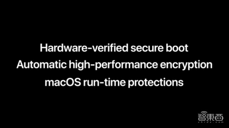 此外,苹果也提到新Mac系统在安全启动、自动高性能加密和运行时保护方面的优势。