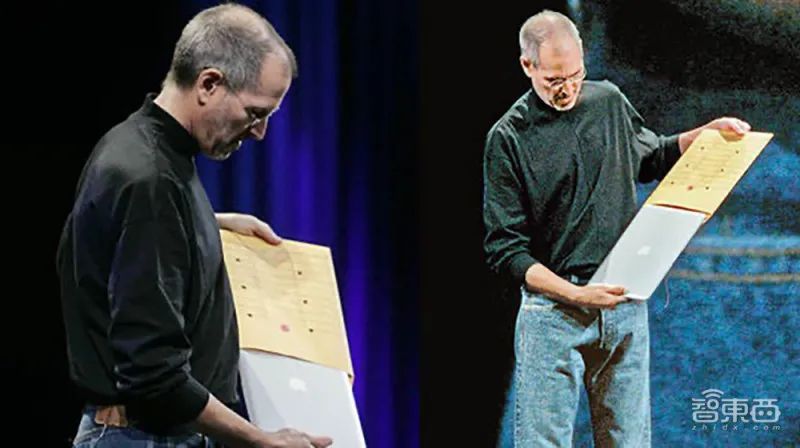 2008年,乔布斯发布首款MacBook Air,从牛皮纸袋里抽出机器的场景成为经典画面。