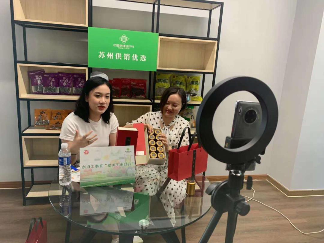 在今年8月举办的“巧妇牵手田姐”助农扶贫活动周活动现场,苏州市妇联携手市供销合作总社开展了一场别开生面的助农扶贫网络直播活动。市妇联党组成员、市妇儿工委办主任、发展部部长朱敏作为首位“田姐”开启直播。吴江太湖雪桑叶茶、贵州铜仁绿头鸭、淮安赵集粉丝等多个品种助农扶贫特色产品组团走进直播间,成为此次助农扶贫活动的一大亮点。