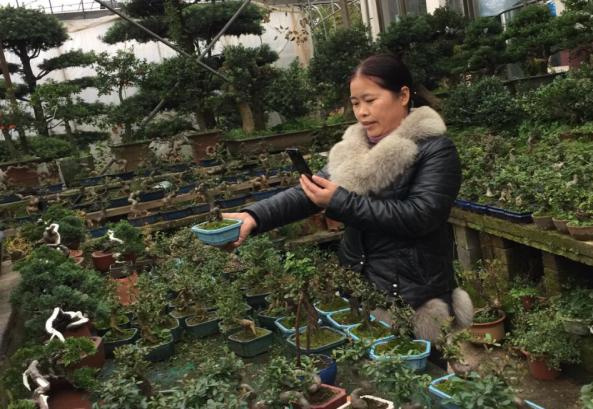 姜爱花是沭阳县新河镇盆景线上销售第一人,2007年,她开设淘宝店“小草园艺”,开始在网上直播专售自家制作的沭派盆景,目前粉丝5万多人,年销售额500万元以上。