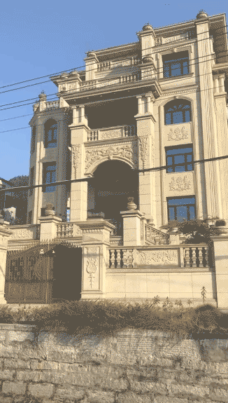 这些别墅的通常是欧式风格,外墙表面是石材,然后进行雕刻装饰。