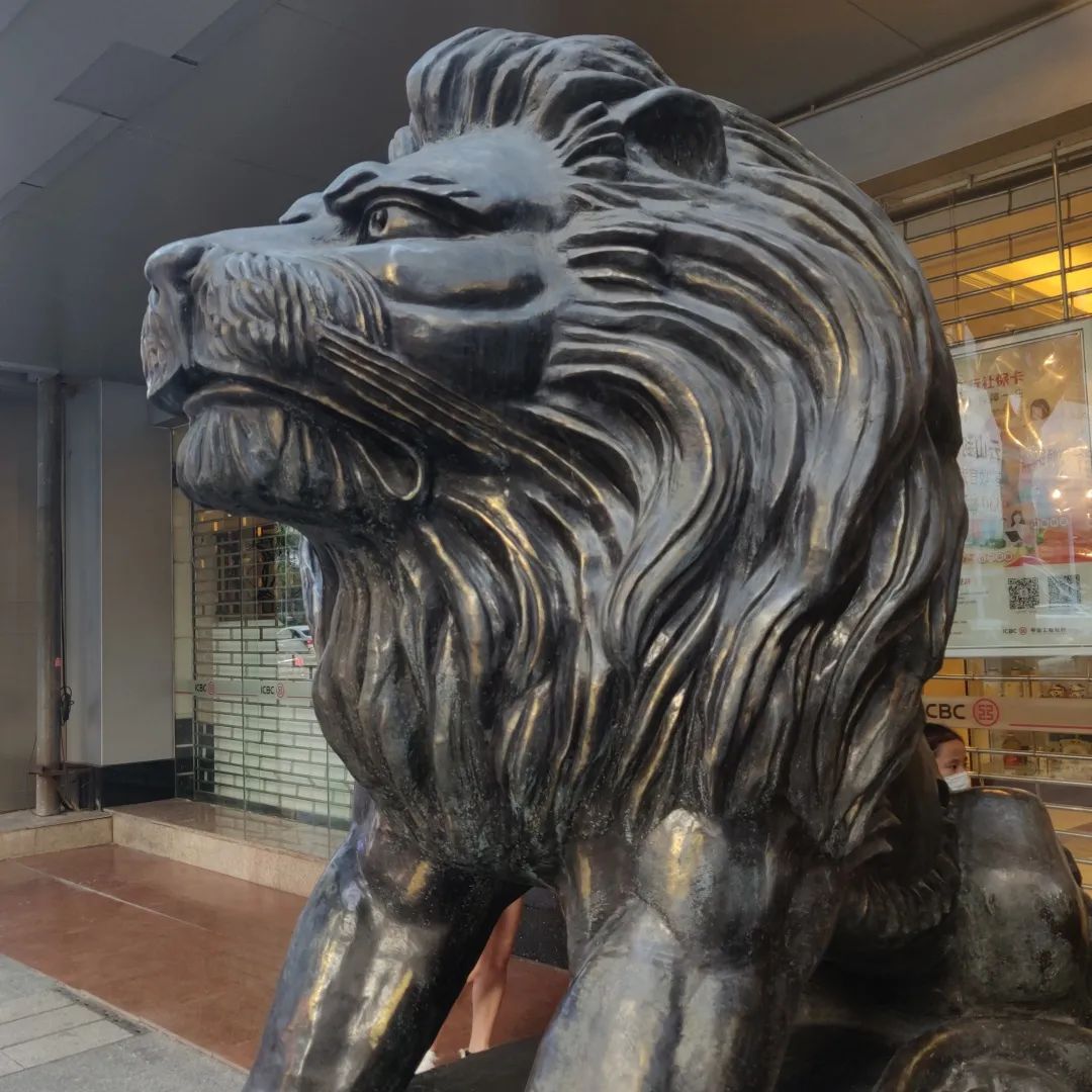 ▴工商银行门口的黄铜狮子等我抬头起来打量它所镇守的宅院,才发现,那是一家,中国工商银行。