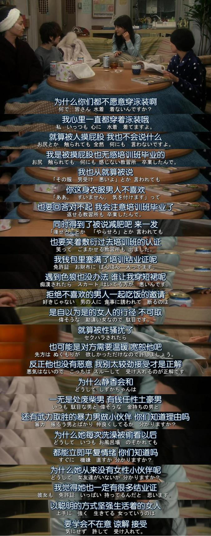 我看到网络上很好玩的这么一个女性运动,叫追打渣男,意思是叫女人不要习惯性自责、不要这么自我怜悯。在这样的一种网络运动当中,你可以适度地解放出来,想一想是不是因为渣男的问题。但不管怎么说,渣男的存在和女人习惯性的自责,和她自怜自怨自艾的这么一种状态相关。