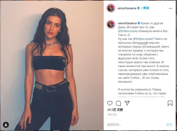 先是手撕《福布斯》(对,就是上文中采访她的《福布斯》),说她并没有受到采访,《福布斯》发布的是假新闻。