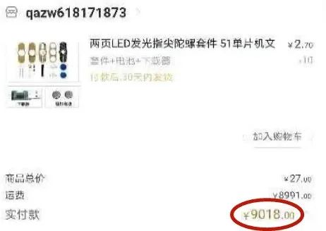 卢先生想购买的商品是一种叫单片机的配件,这种配件的单价在14元-42元之间,有一个商家因为“双11”推出促销价1.7元-2.7元/个。看到有优惠,卢先生就下单买了10个。就在他准备付款时,订单的总金额竟要9018元。