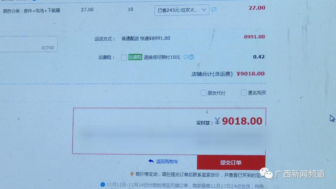 原标题:《“双11”网购27元商品,运费8991元!网友:幸亏卡里没那么多钱》