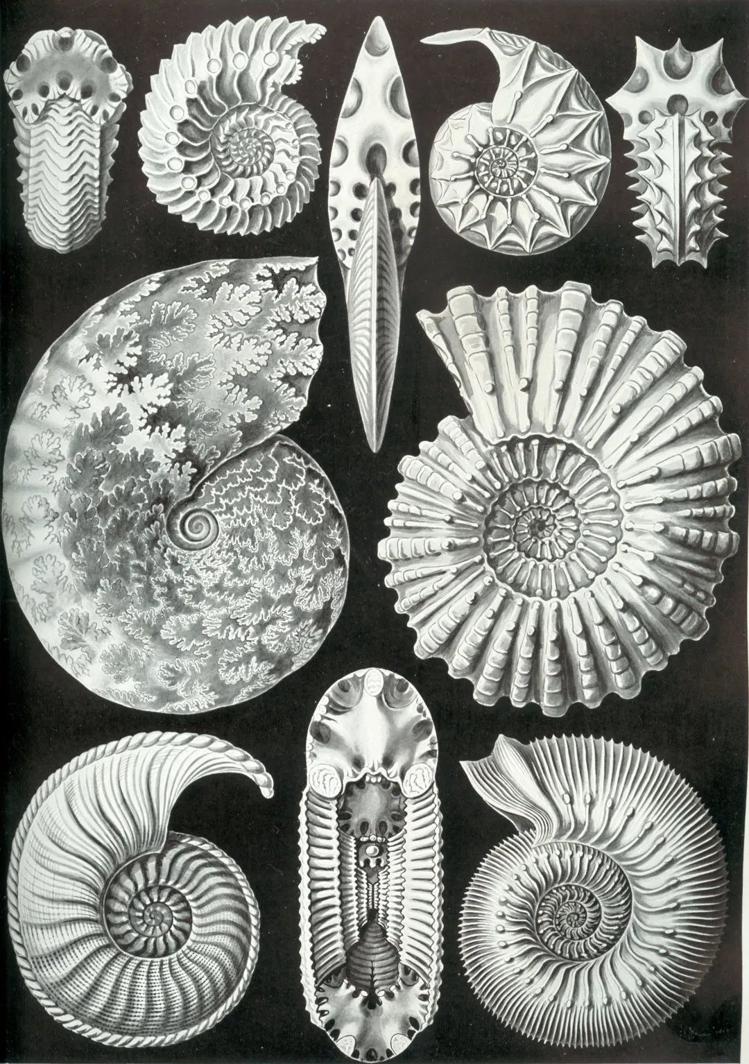 重要的标准化石菊石(Ammonoids),是一种螺旋壳体的头足类动物。它们在古生物学中具有重要意义,可以作为较为精准的“时间刻度”,在泥盆纪-白垩纪有着重要的地层意义。这是因为菊石具有较快的演化速度,特征相对明显,容易识别。例如,生活在不同时期的菊石就有不同的缝合线图案,人们因此可以通过识别这些图案来确定不同的年代。