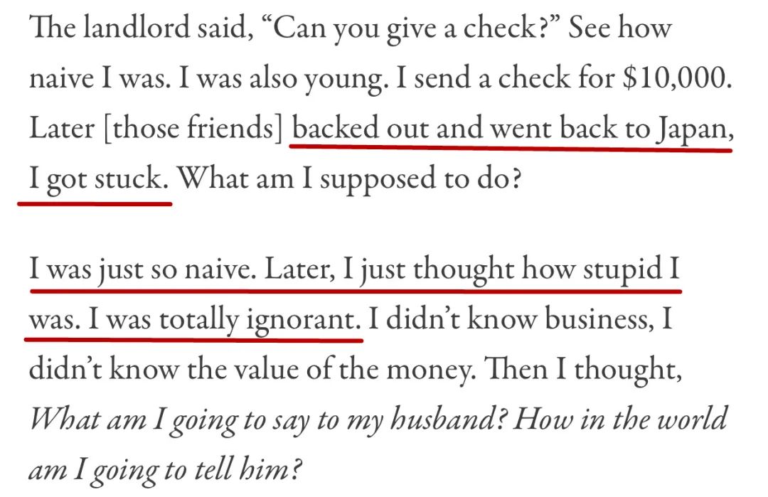 惊讶于为何老美心甘情愿地吃着这些压根算不上传统中餐的中餐还乐此不疲时,江孙芸遇到了在日本认识的朋友,碰巧他们正有想要在当地盘下一家中餐馆的念头。热情友善的她当下就为朋友垫付了10000美金的支票作为房租定金。