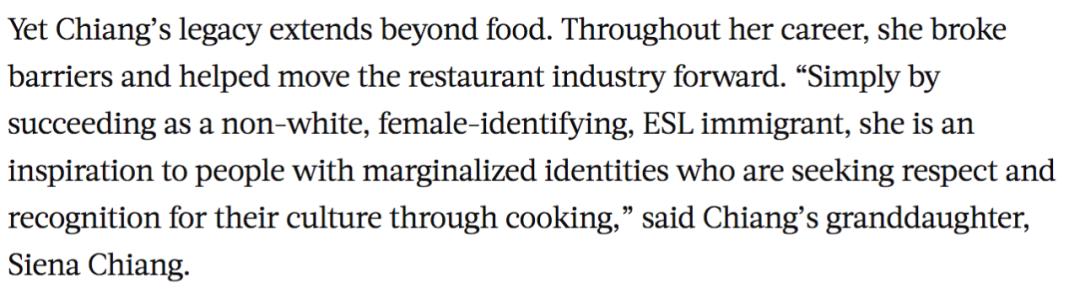 ▲ 纽约时报称她为开创百年风味的餐饮先锋。