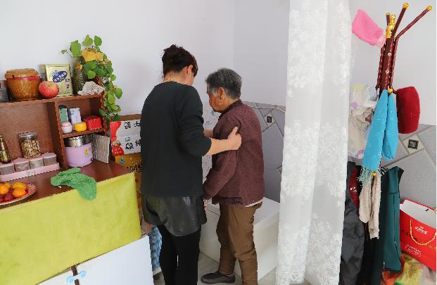 自家的旱厕建在院外菜地里,不要说老伴,就是她自己每到晚上尤其是冬天上厕所都觉得不方便,而且卫生条件差。 今年上半年, 听说村里要进行户厕改造, 她主动申请要求安装。 试用了一阵后, 她和老伴如厕的后顾之忧解决了。 “自从家里安了这个马桶,老头能自己解手, 可比以前省事多了。 到晚上我也不用摸黑往外跑得上厕所, 特别方便、好用。 ” 周凤兰乐呵呵地说。