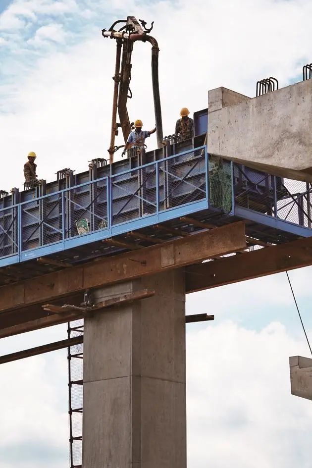 ▲ 工人正对凤仪镇锦场村枢纽互通立交高架桥进行浇筑施工国家高速公路网G56楚雄(广通)至大理(江风寺)高速公路扩容工程,起自楚雄州禄丰县广通镇北,止于大理江风寺,路线全长195.563公里。