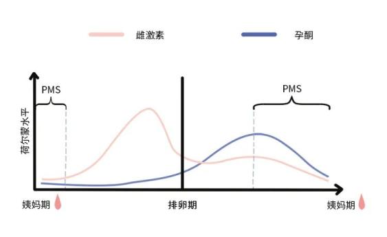 PMS常常发生在黄体期后段及月经初期,学者们普遍认为,是雌激素和孕酮两种荷尔蒙的剧烈降低,导致了PMS症状的产生。