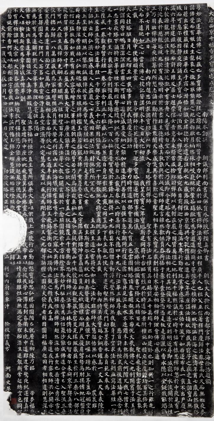 此碑由岑勋撰文,徐浩题额,颜真卿受西京千福寺楚金禅师邀请书丹。碑文记载了西京龙兴寺和尚楚金修建多宝佛塔的事迹。