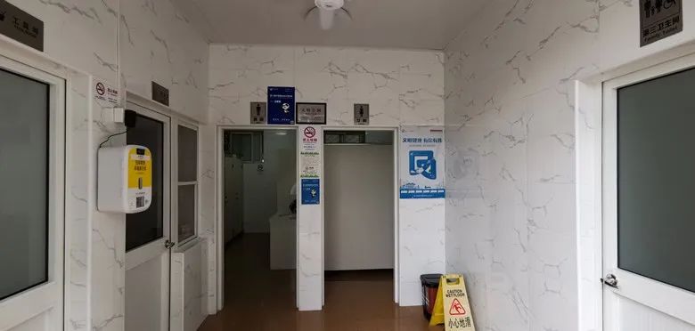 在厕所洗手台下,还安装了品牌小厨宝,可以提供热水洗手。“男厕和女厕洗手台都配备了热水洗手,第三卫生间里也配备了。”张平花介绍,热水器按照季节开启,天冷了,就会提供热水洗手。