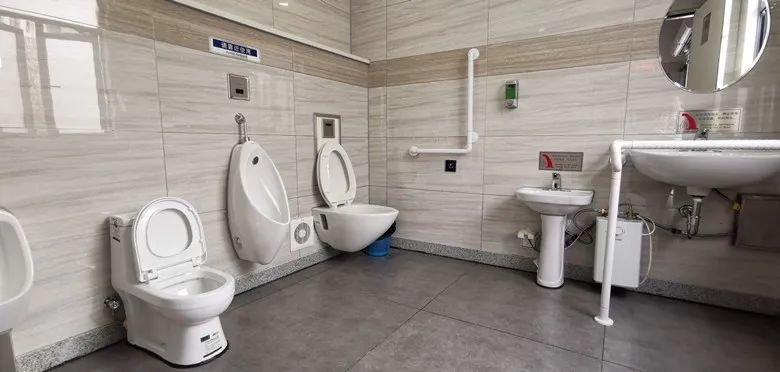 根据公厕女士排队较多情况,在公厕改建时候,也做了厕位优化,男女厕位按1:2配备,减少女厕排队时间。与此同时,原来残疾人卫生间也被改为第三卫生间,内部新增儿童坐便器、小便池、安全座椅和护理台,方便服务残疾人、带小孩家庭等特殊人群。