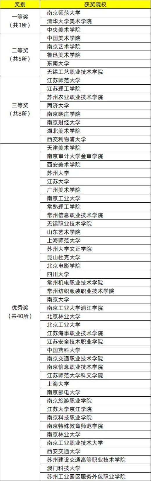 中央美术学院 / 中国美术学院 / 清华大学美术学院 / 广州美术学院 / 鲁迅美术学院 / 四川美术学院 / 天津美术学院 / 西安美术学院 / 湖北美术学院 / 澳门科技大学 / 中国传媒大学 / 北京林业大学 / 北京工业大学 / 北京电影学院 / 同济大学 / 上海大学 / 浙江大学 / 山东工艺美术学院 / 山东艺术学院 / 南京大学 / 东南大学 / 南京理工大学 / 中国药科大学 / 江南大学 / 中国矿业大学 / 南京师范大学 / 苏州大学 / 南京林业大学 / 南京邮电大学 / 南京工业大学 / 南京财经大学 / 南京艺术学院 / 南京工程学院 / 南京晓庄学院 / 南京特殊教育师范学院 / 南通大学 / 江苏大学 / 江苏师范大学 / 徐州医科大学 / 西交利物浦大学 / 江苏开放大学 / 南京工业职业技术大学 / 常熟理工学院 / 江苏理工学院 / 淮阴师范学院 / 江南影视艺术职业学院 / 淮阴工学院 / 徐州工程学院 / 三江学院 / 南京航空航天大学金城学院 / 南京工业大学浦江学院 / 南京审计大学金审学院 / 南京传媒学院 / 苏州大学文正学院 / 江苏大学京江学院 / 南京交通职业技术学院 / 南京科技职业学院 / 江苏经贸职业技术学院 / 南京信息职业技术学院 / 江苏海事职业技术学院 / 南京城市职业学院 / 南京视觉艺术职业学院 / 江苏信息职业技术学院 / 无锡职业技术学院 / 无锡商业职业技术学院 / 无锡工艺职业技术学院 / 江苏建筑职业技术学院 / 江苏安全技术职业学院 / 常州信息职业技术学院 / 常州纺织服装职业技术学院 / 常州工程职业技术学院 / 苏州市职业大学 / 苏州工艺美术学院 / 苏州农业职业技术学院 / 苏州健雄职业技术学院 / 江苏工程职业技术学院 / 江苏农林职业技术学院 / 江苏农牧科技职业学院 / 泰州职业技术学院 / 苏州建设交通高等职业技术学校……
