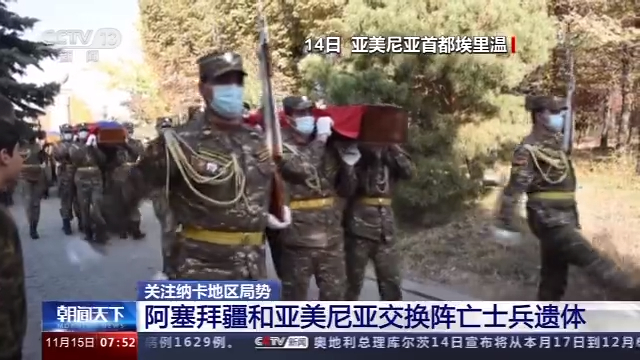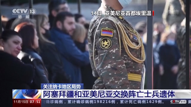 阿塞拜疆国防部14日证实,在俄罗斯驻纳卡地区维和部队的参与下,阿塞拜疆与亚美尼亚当天交换了两国部分阵亡军人的遗体,阿塞拜疆将一些亚美尼亚阵亡士兵的遗体交给亚美尼亚,亚美尼亚则将六具阿塞拜疆阵亡士兵遗体交给阿塞拜疆。