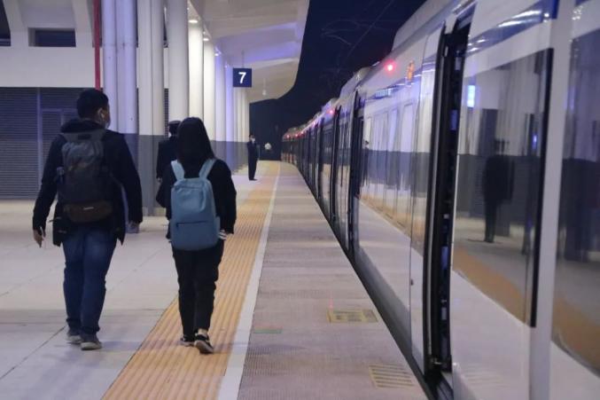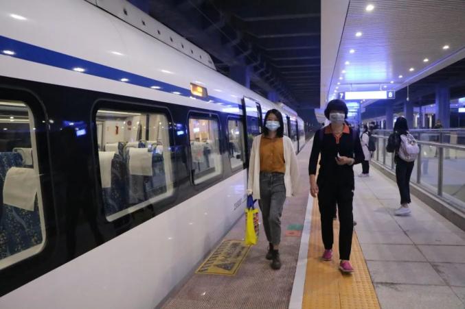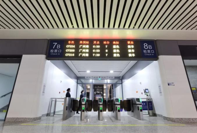 江门站前往广州南的列车已“在线”等待乘客的到来