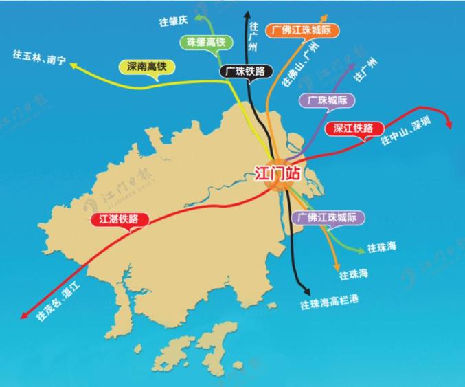 江门日报记者 周华东 摄江门站汇聚了既有的江湛铁路、广珠城际、广珠铁路,以及在建的深江铁路、拟开工的珠肇铁路和规划中的深南高铁、广佛江珠城际等。是省内仅次于广州南站、深圳北站、佛山西站的第四大轨道交通枢纽。