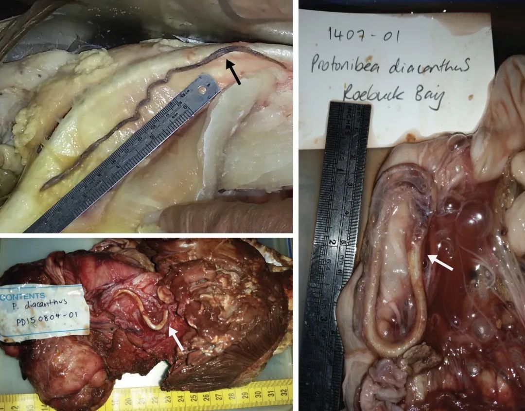 Pogonoski的一位研究伙伴还曾抓过一条鱼,吃之前清理鱼的时候发现——鱼的体内有一条蛇鳗,而且还是活的。他们的科研小组就研究过蛇鳗是如何在其他鱼类的胃壁钻孔,然后逃出。