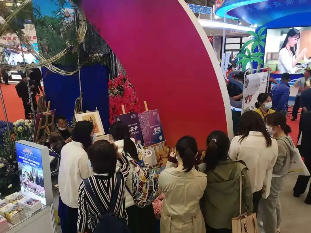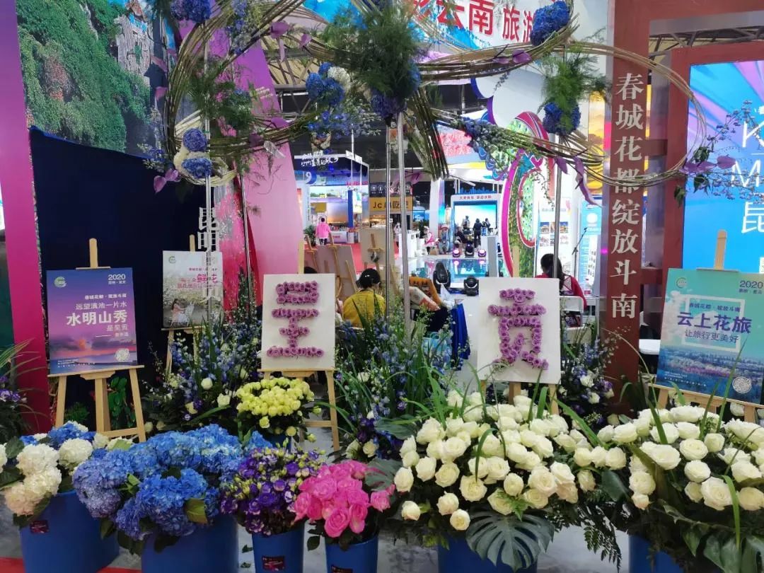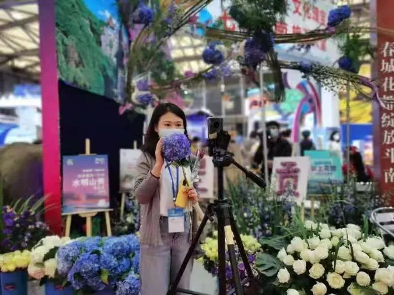 在本届旅交会上,呈贡是最为别致的存在,花都特色彰显得淋漓尽致。一万多枝玫瑰、绣球、紫掌尽情展现着呈贡的风情。展会现场构建了一个蓝色系的移动迷你“春城花都花乐园”,让云上花旅充满了想象。