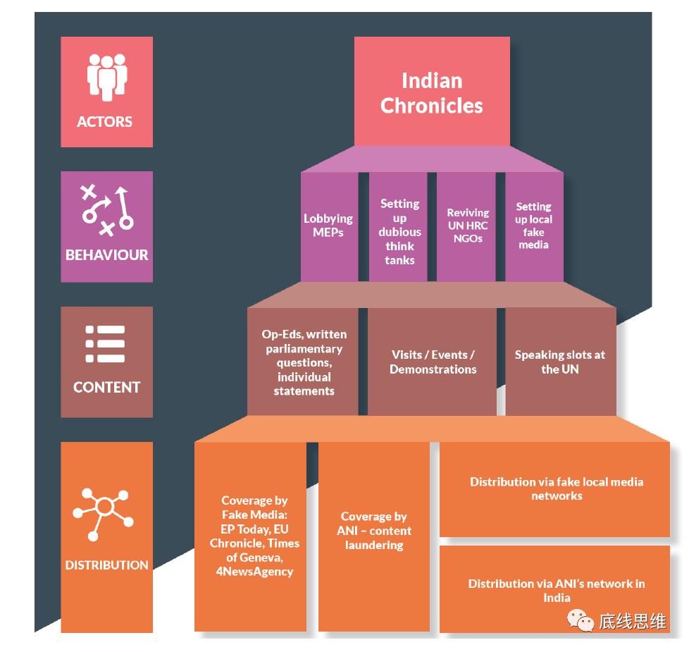 《印度纪事(Indian Chronicle)》调查报告总结的虚假信息网络工作流程这份重磅报告已在巴基斯坦引发轰动,巴总理和外长都援引报告,敦促联合国相关机构和欧盟议会调查印度相关行动,而被戳到痛处的印度官方则慌忙否认。
