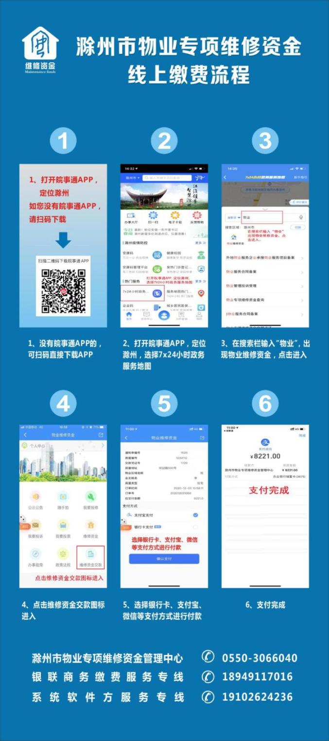 作为省内首家实现线上缴纳物业专项维修资金的单位,广大业主可通过“皖事通”APP实现银联在线支付、微信、支付宝进行缴纳物业专项维修资金。该平台不仅实现了线上为购房者提供物业维修资金的查询、缴款等服务,解决了以往大厅排队刷卡缴费低效的问题,同时也加快了行政服务大厅办理业务的效率。