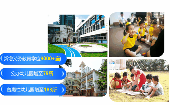 ✦全链条优质教育基本形成。公办幼儿园从6所增至79所,普惠性幼儿园增至183所,学前教育“5080”工程全面达标,新增义务教育学位9000多座。✦医疗卫生实力加速提升。华中科技大学协和深圳医院二期一段工程顺利封顶,新建3家社康中心,建设109个社康首席专家工作室。