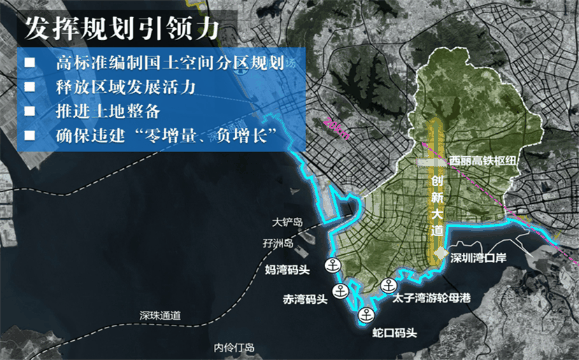✦支持前海蛇口自贸片区发挥国家战略平台作用。发挥中海油、中集等涉海企业集聚优势,助力深圳建设全球海洋中心城市。✦主动融入粤港澳大湾区建设。加快推动西丽高铁枢纽规划建设,协调推进赣深铁路、深汕铁路、深惠城际建设。