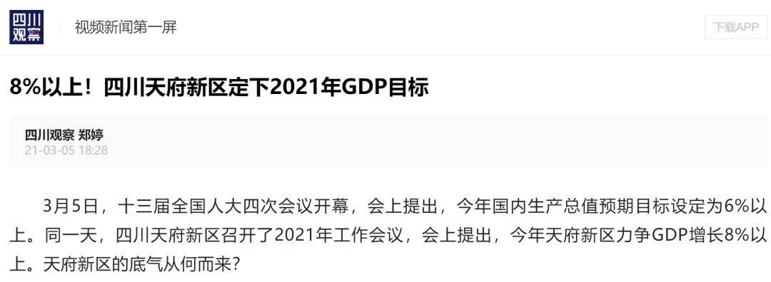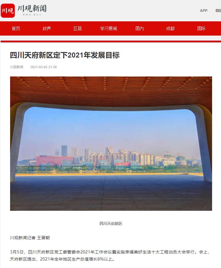 四川观察客户端聚焦天府新区2021年经济工作会议,四川观察客户端发布《8%以上!四川天府新区定下2021年GDP目标》。