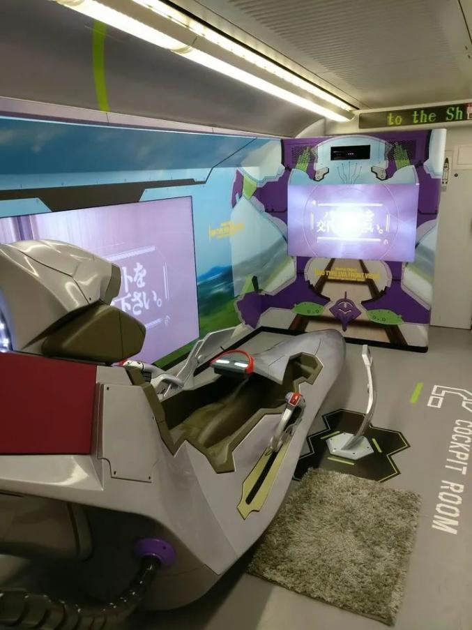 你甚至可以在列车上扮演坐在EVA里的真嗣可惜的是,这列以初号机为配色的新干线已在2018年退役,现在只能在博物馆看见它了。