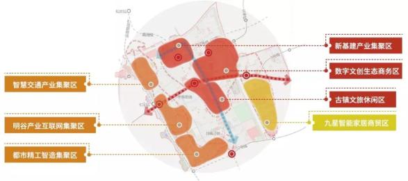 “一核一区一带”规划图下一步,七宝镇将在“一核一区一带”的规划基础上,深挖优势产业、探索发展路径、优化营商环境,逐步形成以古镇文旅休闲区、数字文创生态商务区、新基建产业集聚区、九星智能家居商贸区、都市精工制造集聚区、明谷产业互联网集聚区、智慧交通产业集聚区为代表的七大产业新集群,打造“新七宝”产业基地。